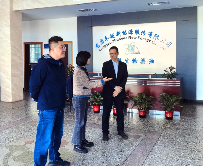交流期间,叶小梅一行参观了生产园区,详细了解企业在生物质能源转化领域的技术布局与产业实践成果。龙岩卓越新能源股份有限公司是一家专业从事废油脂(包括地沟油、酸化油等)资源化利用的高新技术企业,主要研发、生产与销售生物柴油及生物基材料,产品广泛应用于清洁动力能源和生物基绿色化学品等领域,是我国目前生物柴油行业中产能规模领先、出口量较大的龙头企业。